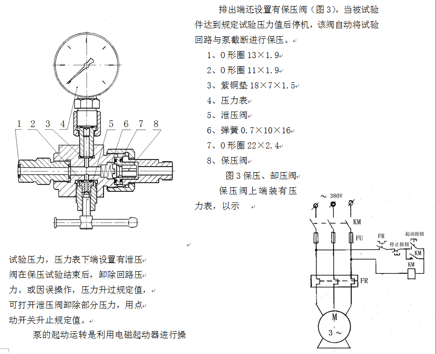 8、回流閥不應長時間處于回流狀態(tài),將引起泵體內試驗介質(水)過度發(fā)熱。壓力升止規(guī)定試驗壓后應即時停機保壓。