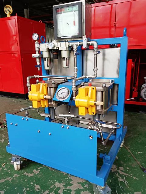 它是使用壓縮空氣為動力源,以氣動泵為壓力源,輸出液壓力與氣源壓力成比例。通過對氣源壓力的調(diào)整,便能得到相應(yīng)的液壓力。當氣壓力與液壓力平衡時,氣動泵便停止充壓,輸出液壓力也就穩(wěn)定在預(yù)調(diào)的壓力上,通過控制進氣量大小,從而控制升壓速度。因而具有防爆、輸出壓力可調(diào)、升壓速度可控、體積小、重量輕、操作簡單、性能可靠、適用范圍廣等特點。它特別適用于油田鉆采工程的防噴設(shè)備、閥門、管道、連接件、壓力容器等受壓設(shè)備的高壓和超高壓試壓檢驗。同時也適合科研、檢驗部門作檢測工具。